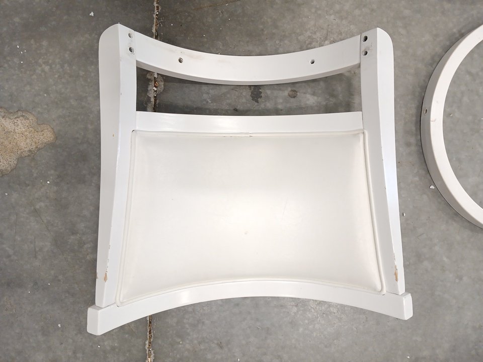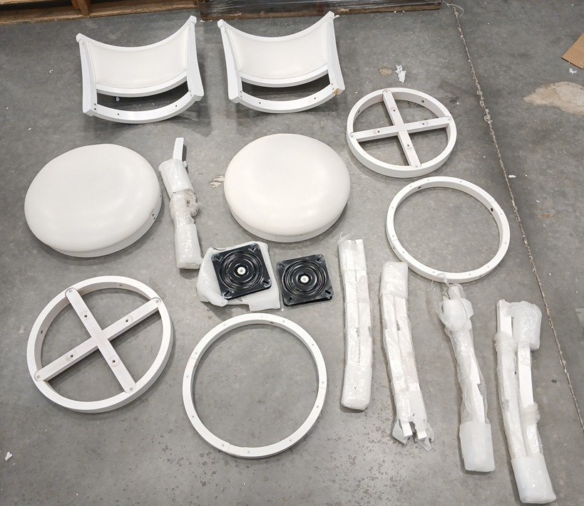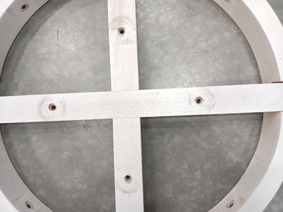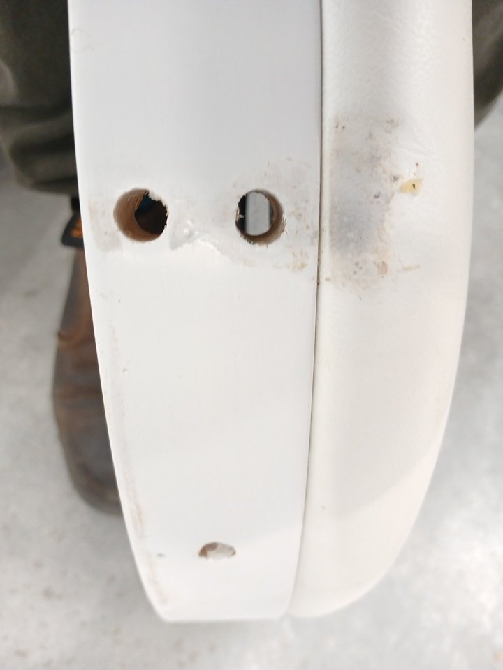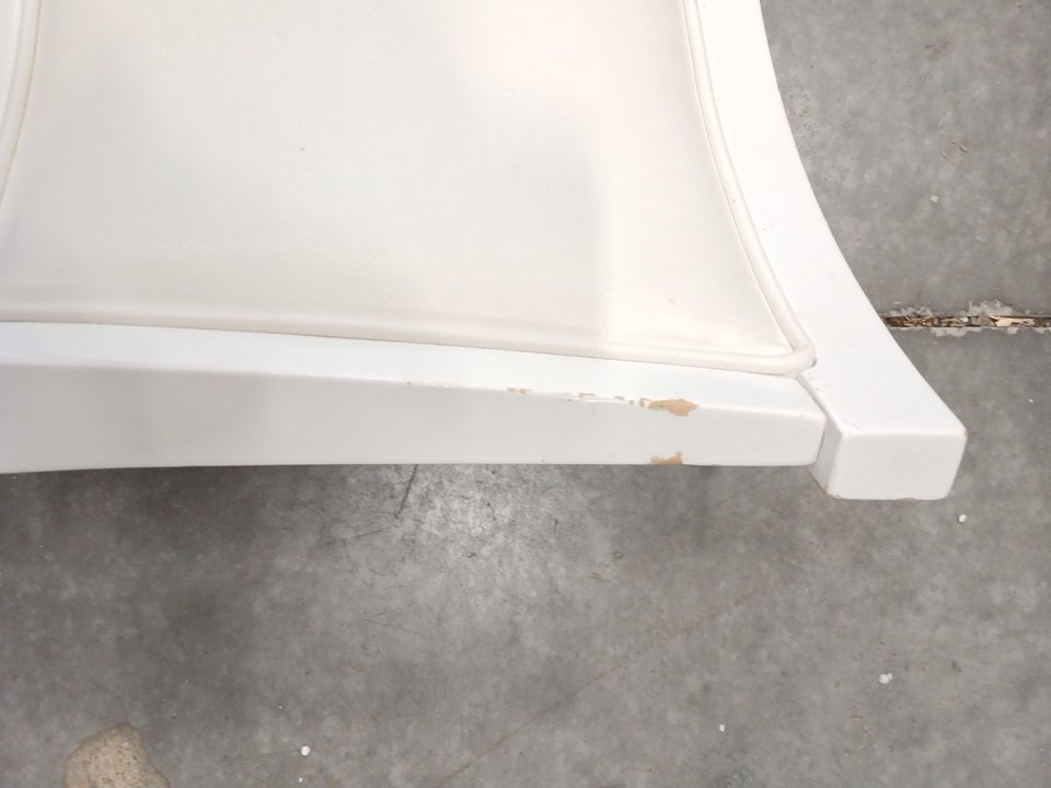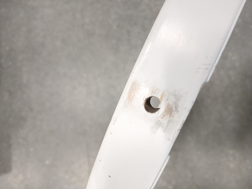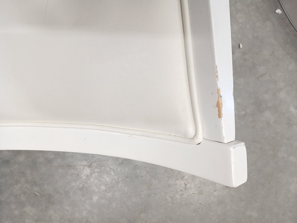 This item has previous assembly marks, chips to its paint, and scuffs to its sides. Additional hardware is required