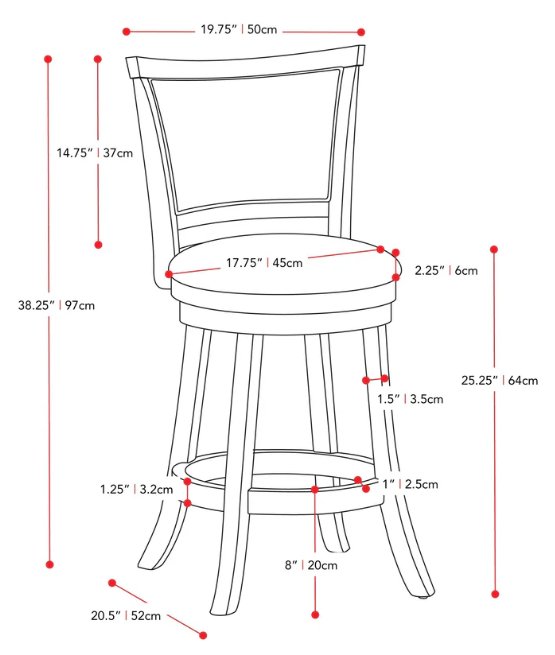 2PK Wesley Counter Height Bar Stools - 38" x 20.5" x 17.7" - White