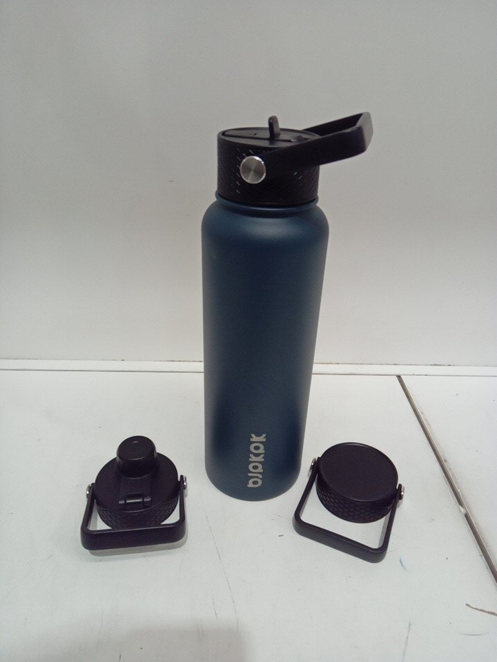 BJPKPK Insulated Water Bottles with Straw Lid - additional lids included - 40oz - navy blue