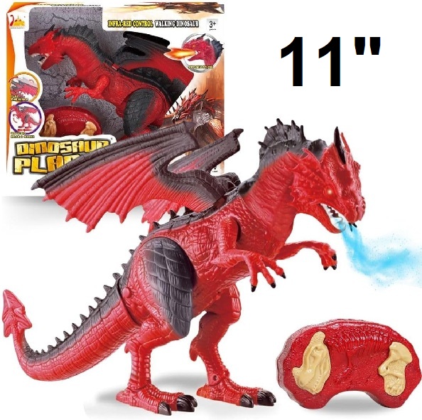 liberty imports Remote Control RC LED Light Up Walking Roaring and Spraying Smoke dragon - 11" - red/black
