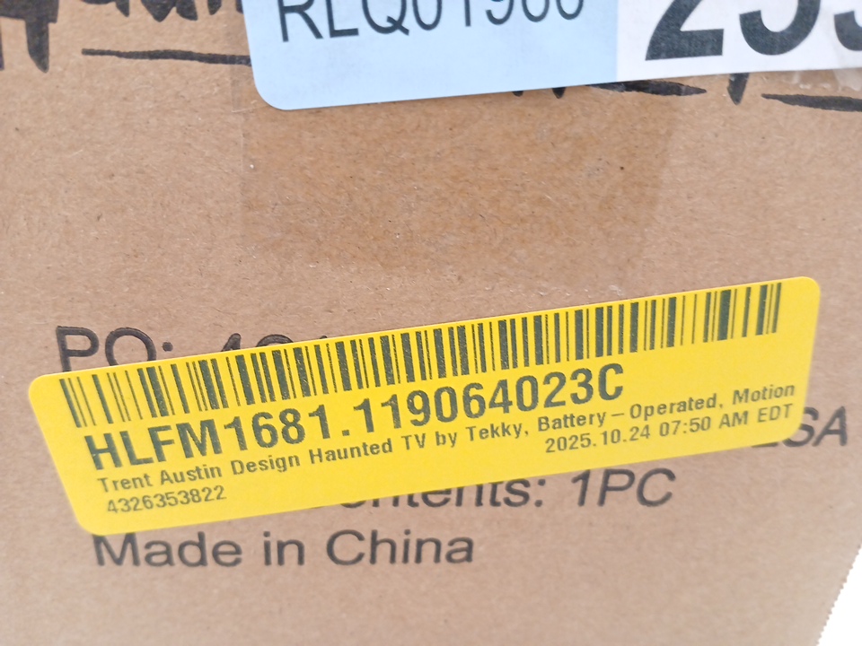NOTE: this item is a Halloween prop. This item was not able to be tested because the battery cover plate has a stripped screw that we were unable to remove in order to put batteries in.