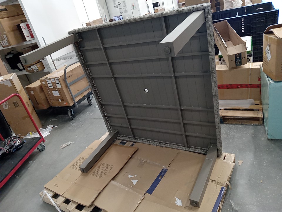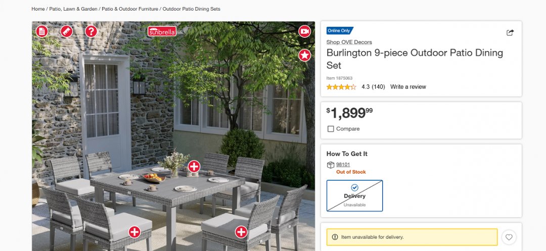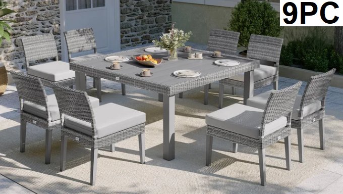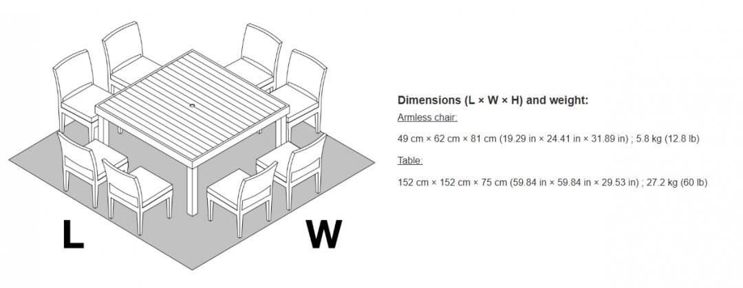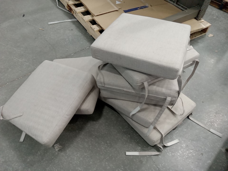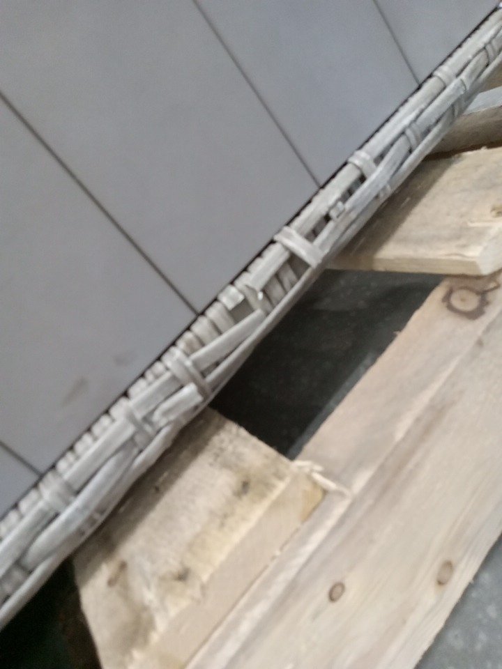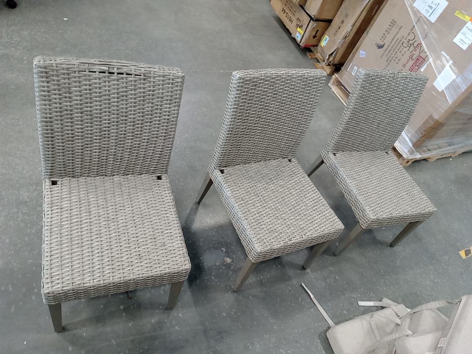 Item has scuffs, stains and fading present from previous use, the wicker strands are broken on some chairs and corners of the table. Cushion are dirty from loose shipping/storage. Please note this item is big bring appropriate vehicle and help at the time of pick up.