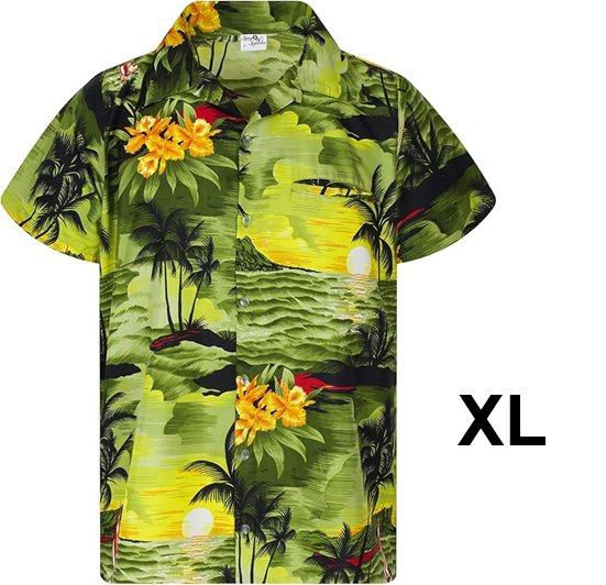 MEN'S King Kamehameha Casual Button Front Short Sleeve SHIRT - EXTRA LARGE - SURN DESIGN GREEN