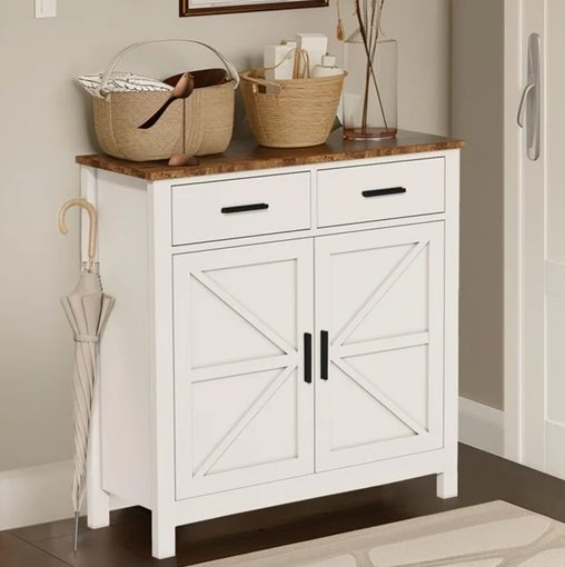 Modern Farmhouse Buffet Cabinet with Storage, Coffee Bar with 2 drawers and 2 Doors - 31.6" x 31.5" x 11.4" - BROWN/WHITE