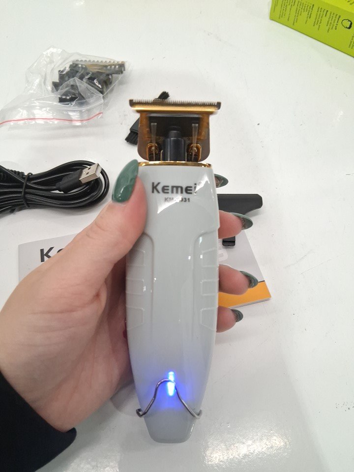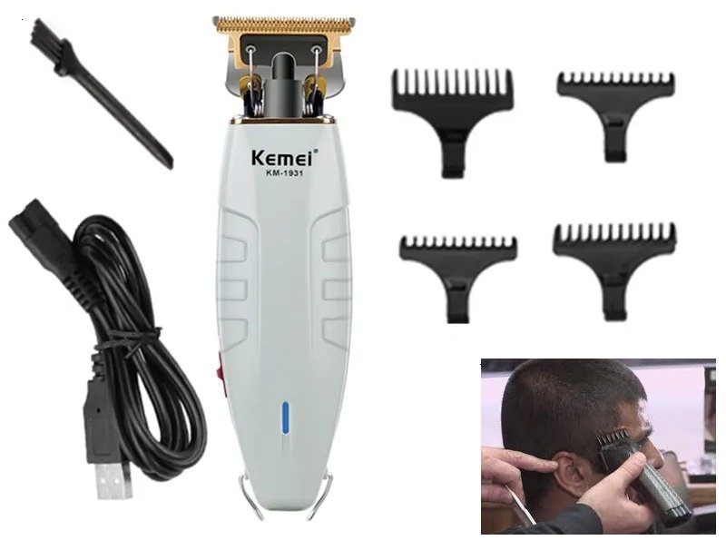 kemi electric clippers with various trimmer pieces - soft grey (model: km-1931_