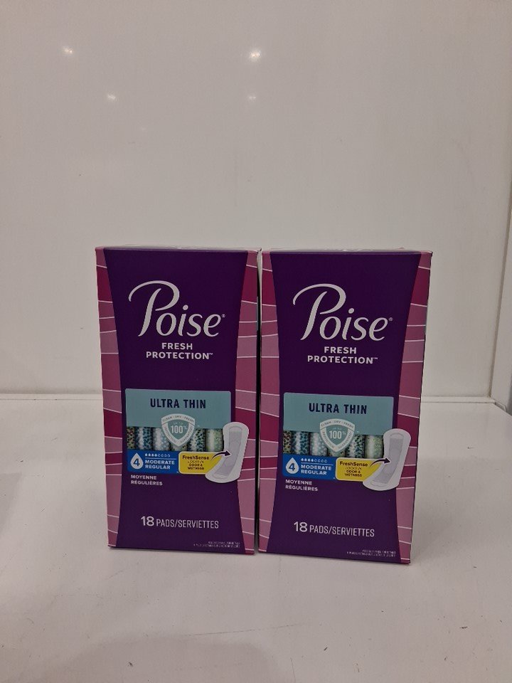 2 (18PK) POISE Ultra Thin Pads - 4 Drop, Moderate Absorbency, Regular Length