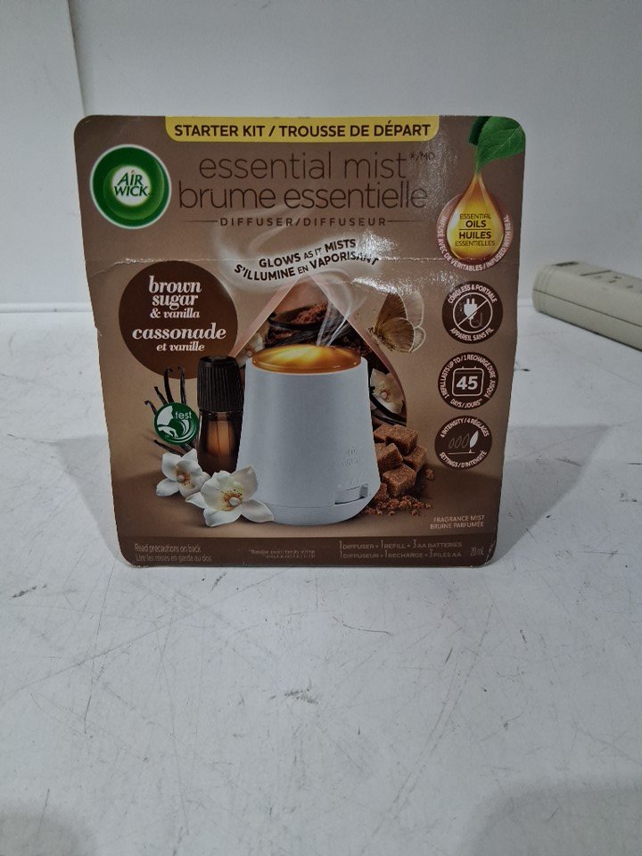 2pc air wick essential mist fragrance oil diffuser glows while misting - 20ml - white - brown sugar and vanilla