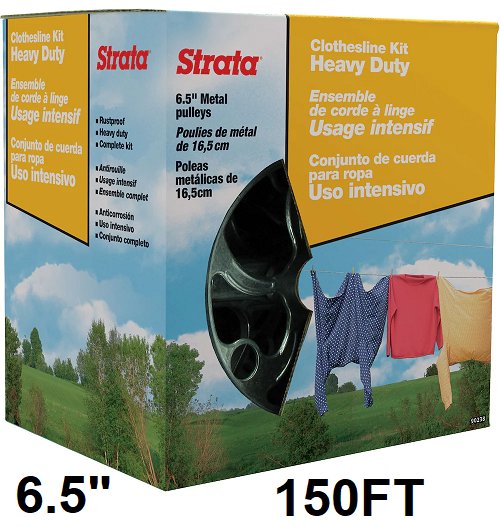 STRATA STRATA Heavy Duty Clothesline Kit - 150FT LONG AND 6.5" METAL PULLEY - SILVER - (MODEL: A90238B)