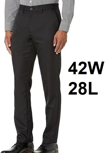 MEN'S AMAZON ESSENTIALS SLIM-FIT FLAT-FRONT DRESS PANTS - 42W X 28L - BLACK (STYLE: MAE65006SP18_SUS)