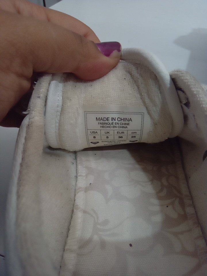 appears that there is some discoloration on the soles of the shoes and around the front (see photos)