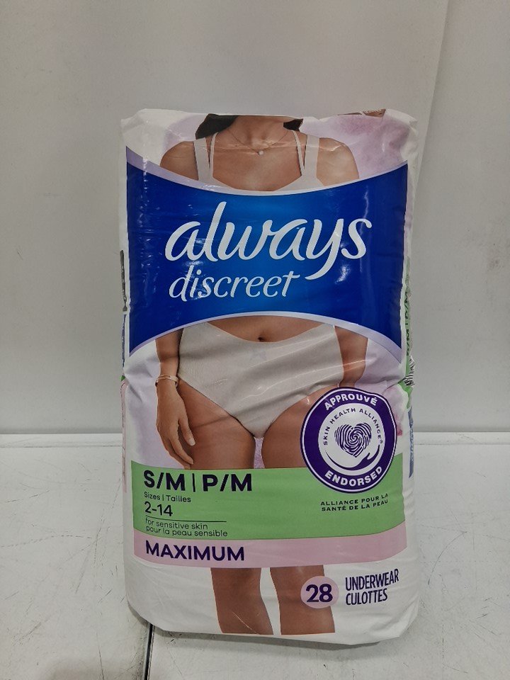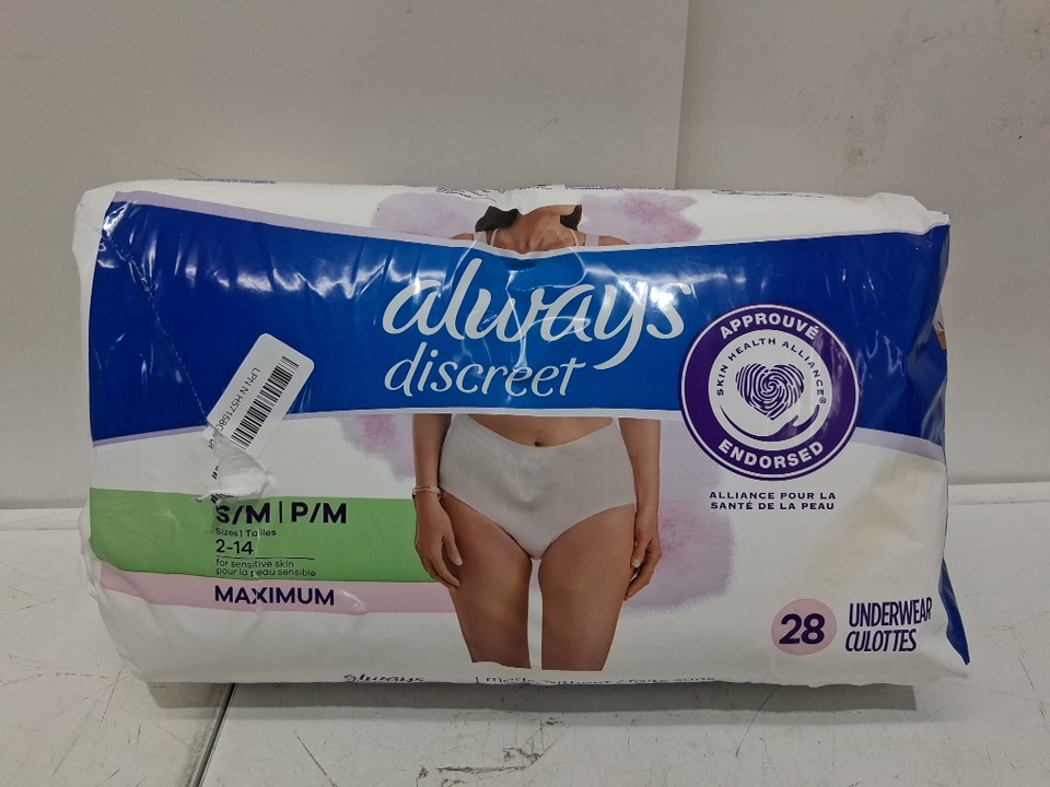 28pk women's always discreet for sensitive skin underwear - small/medium (sizes 2-14) - maximum absorbency