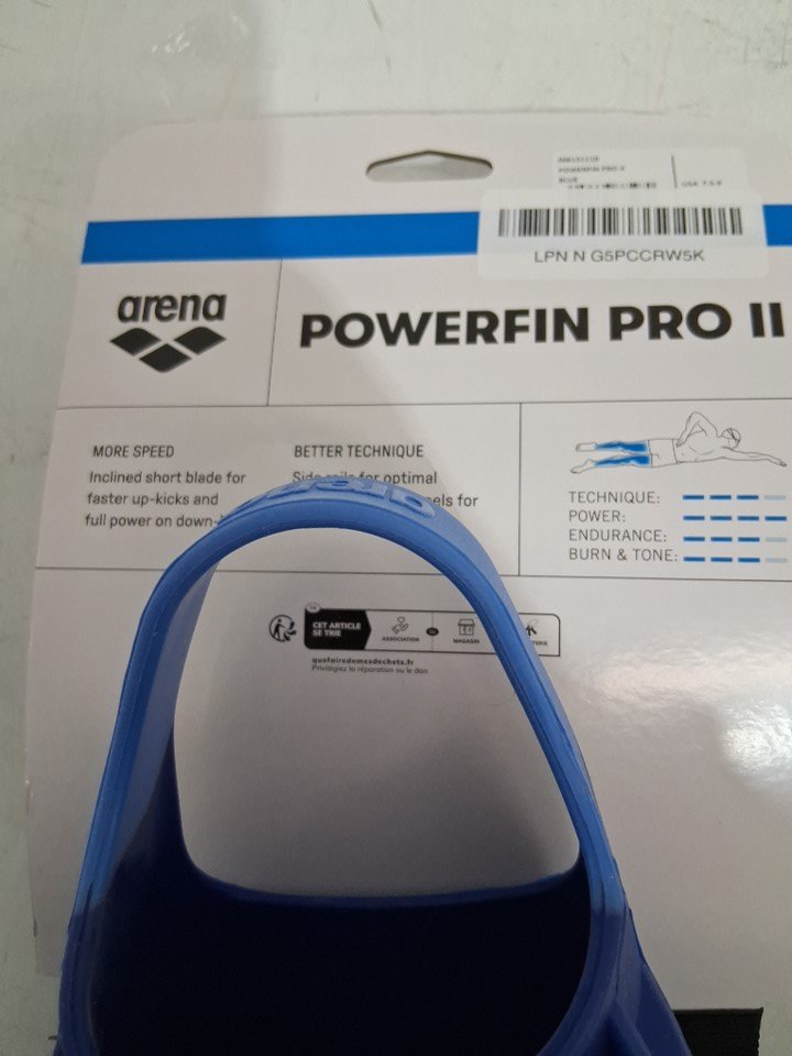 Adult Arena Powerfin Pro II Swim Training Fins - SIZE 7.5 - 9 - BLUE