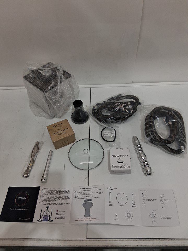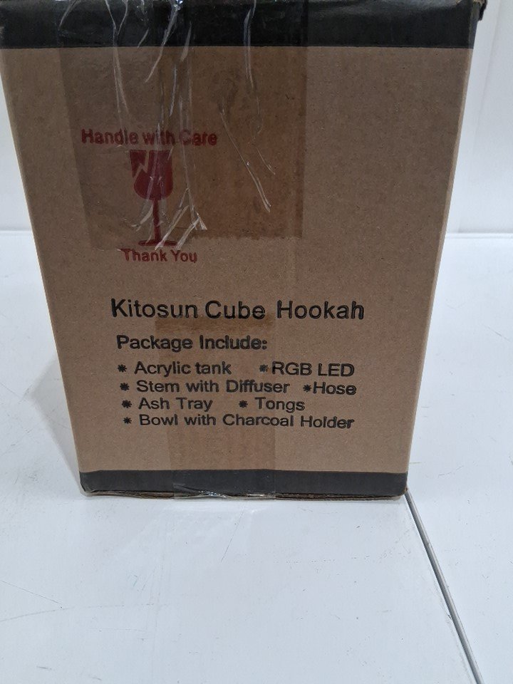 Kitosun arcylic Cube hookah set Remote LED Light with glass ash tray down stem diffuser - 1.5 meter Hose - clear