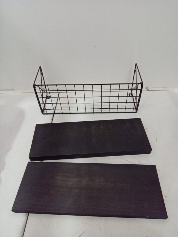 2PK floatinng wall shelves with hanging organizing basket - 16" - black