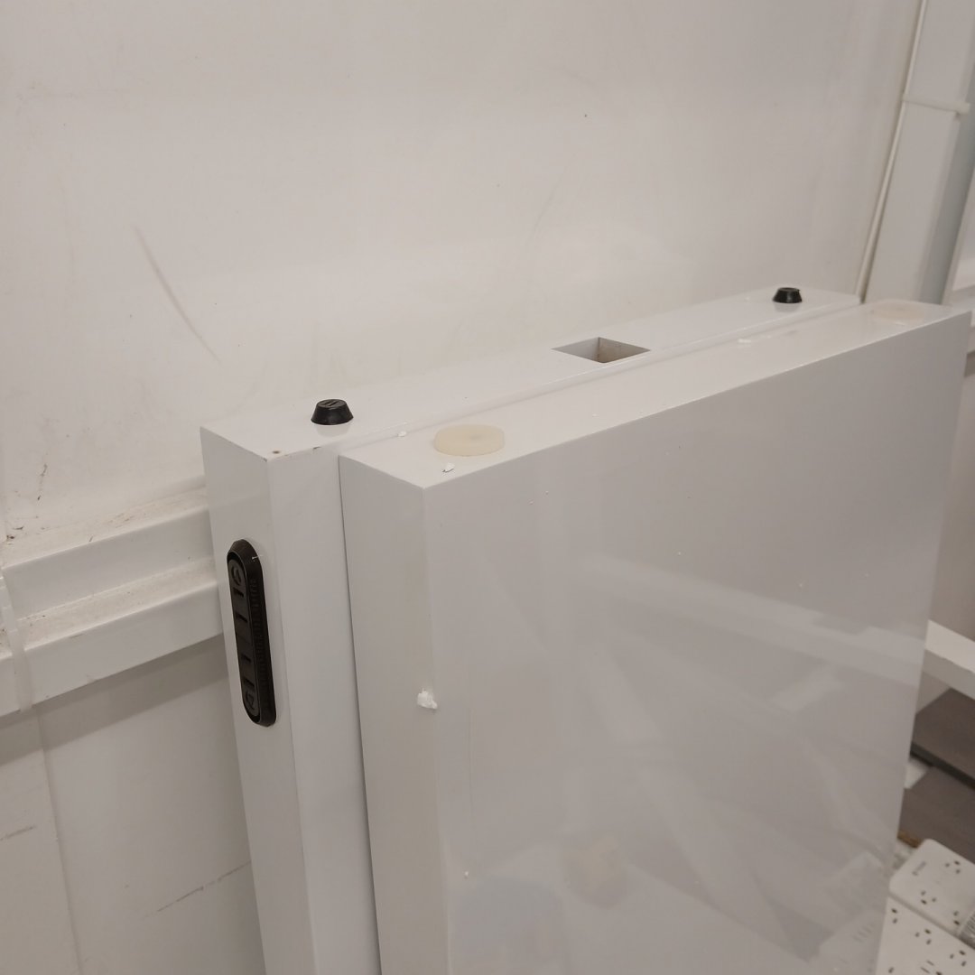 Metal legs have scuffs and some cosmetic damage. This appears to have been part of a larger item, and may require additional hardware for assembly.