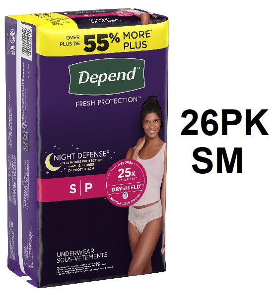 26pk women's depend night defense protection underwear - small (24" to 30") - (style: 51701)