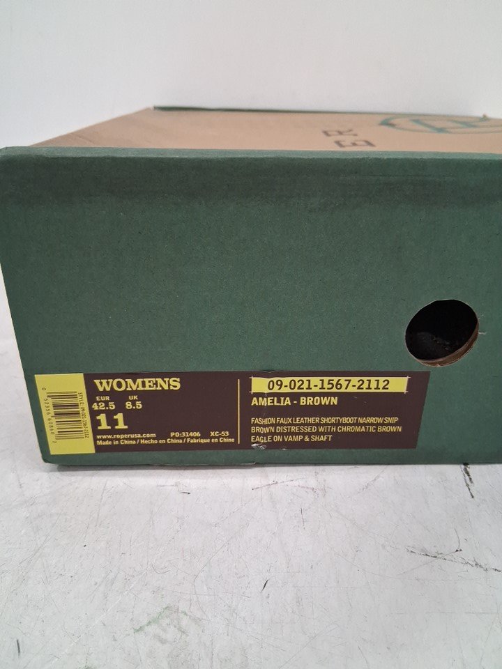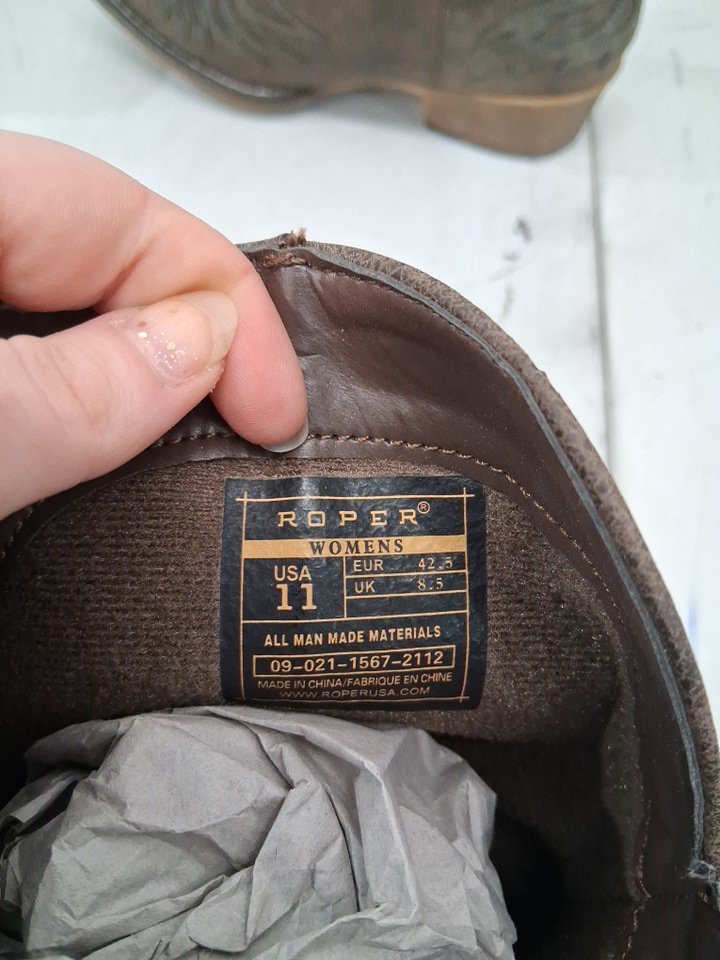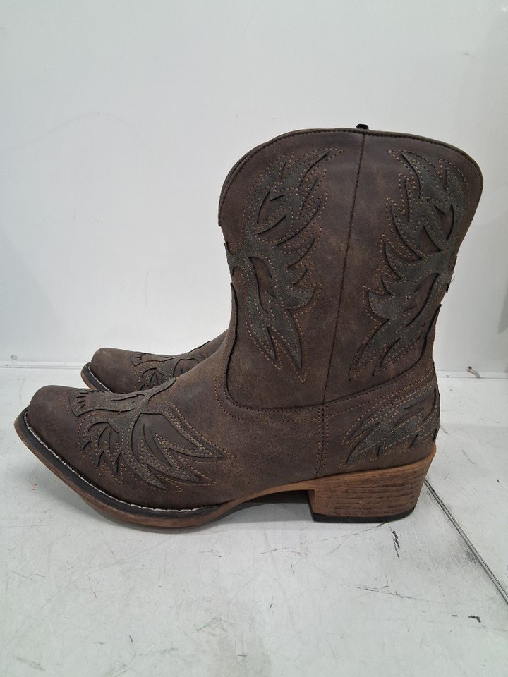 WOMEN'S ROPER COWBOY BOOT AMELIA FAUX LEATHER SHRTY SNIP VINTAGE SOLE BROWN SIZE 11