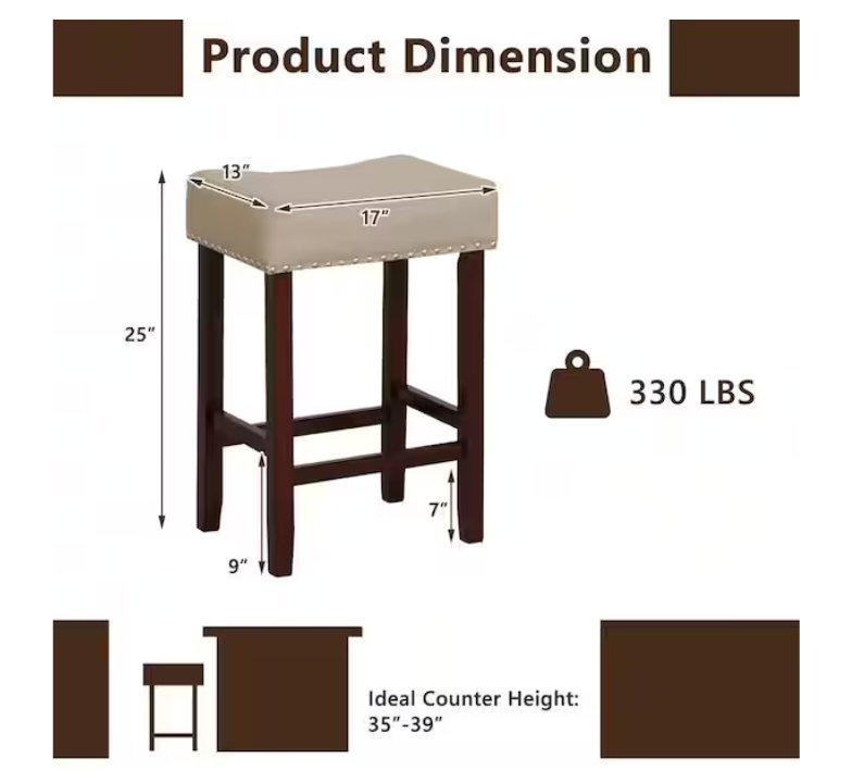 2PK Costway Backless Saddle Counter Height Barstool - 24" - BEIGE/brown (MODEL: JV10850BE-24)