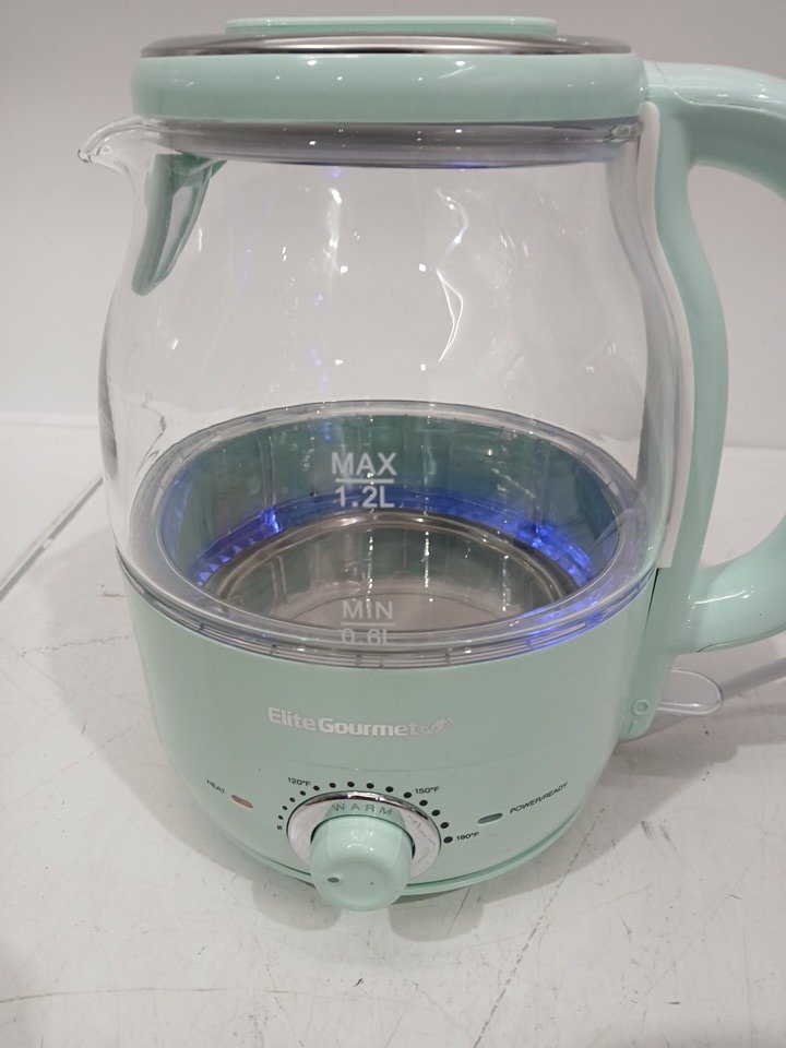 Elite Gourmet Electric Glass Kettle with Temperature Dial and keep warm option - 1.2 Litre - green (Model: EKT1220M)