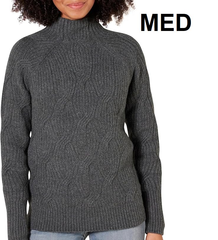 women's amazon essentials soft touch funnel neck cable sweater - medium - dark grey - (model: AEW30116F21)