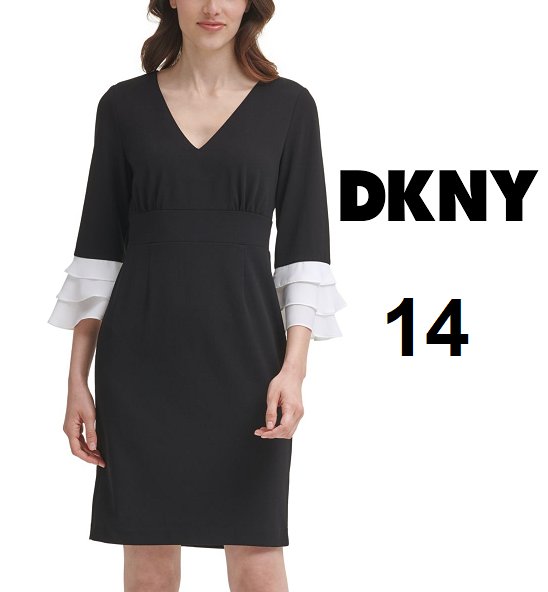 women's dkny maroon sleeve scuba sheath dress - 14 - black/white (style: dd1h2105)