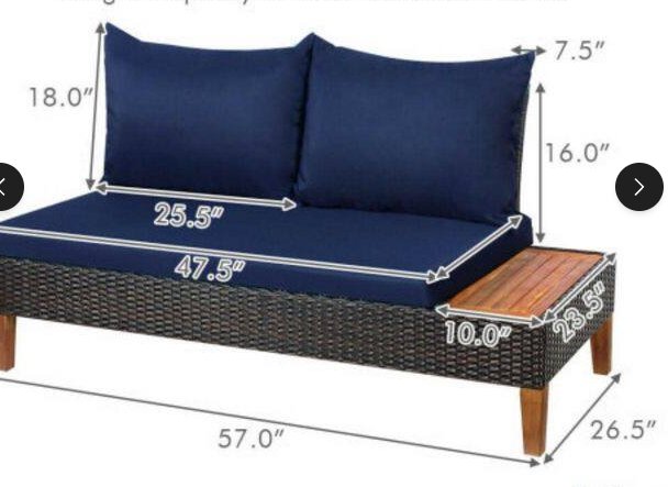 Missing one of the back pillows Part of a 4 piece set, we only have this one loveseat/table combo