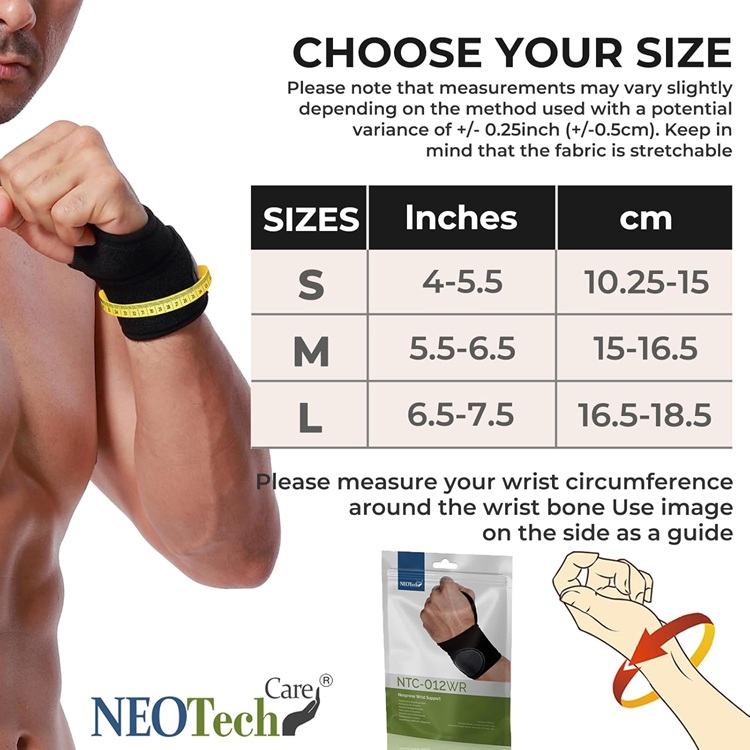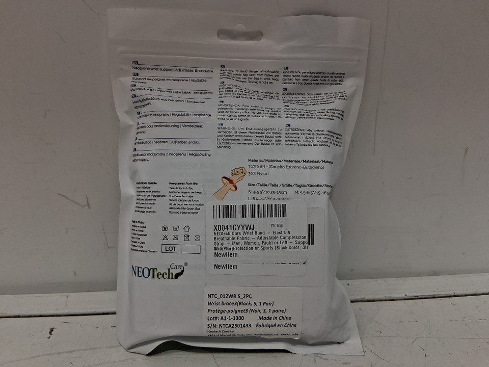 2PK UNISEX ADULT NEOTECH CARE ELASTIC COMPRESSION WRIST BAND - small - BLACK