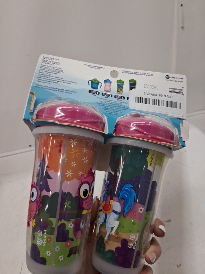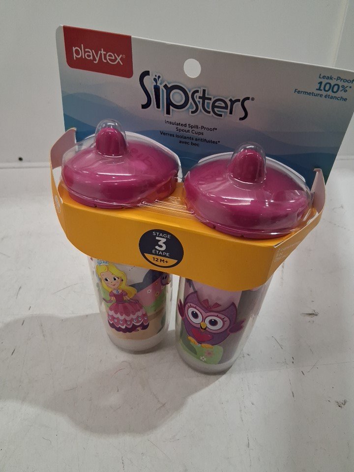2PK PLAYTEX SIPSTERS UNSULATED SPRILL PROOF SOUT CUPS - STAGE 3 12M+ - princess/owl pink