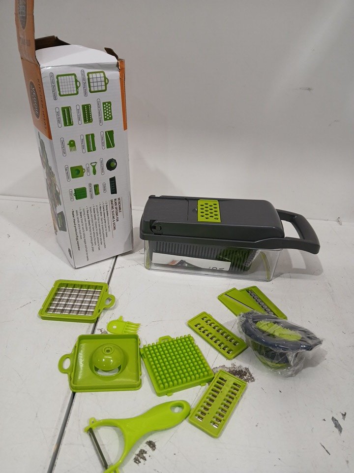 16PC KITCHEN IDEAS VEGGIE SLICER - MULTIFUNCTIONAL - GREY/GREEN