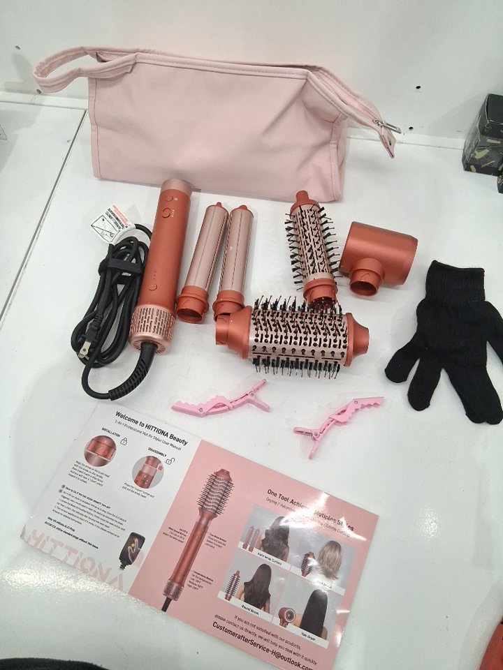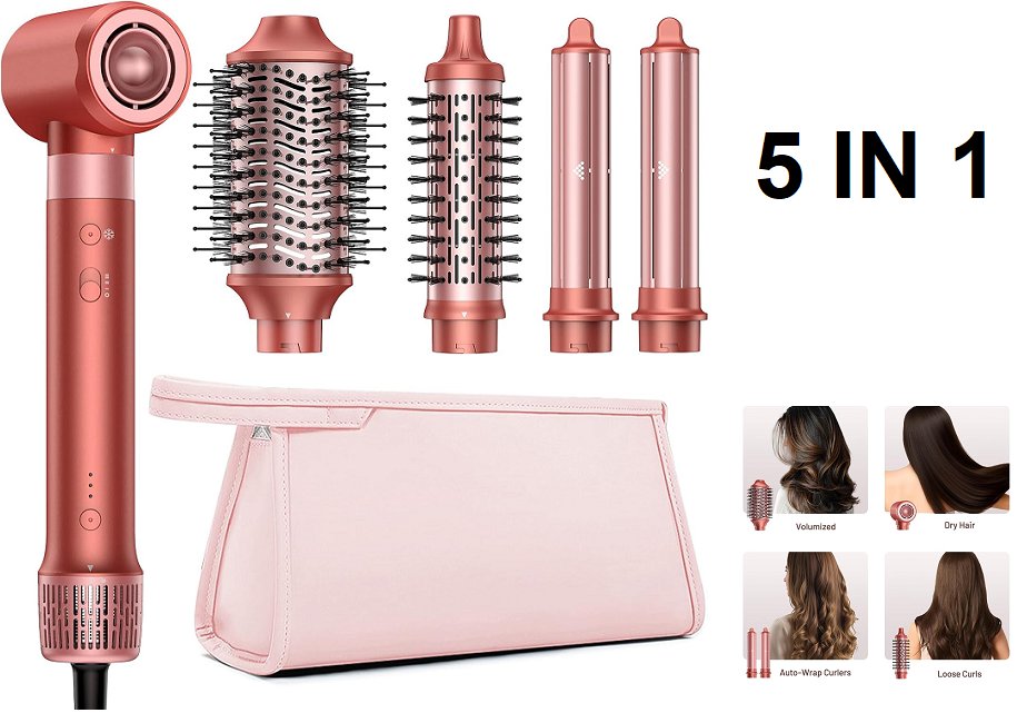 hittiona high speed 5 in 1 hair styler with travel bag - coral red (mdoel: f2)