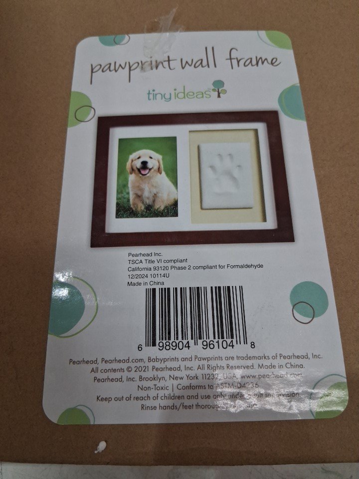 6PC PET TINY IDEAS PAWPRINT WALL FRAME IMPRESSION KIT WITH NO MIXING,NO MESS, AIR DRYING CLAY AND TOOLS WITH PHOTO FRAME - BROWN