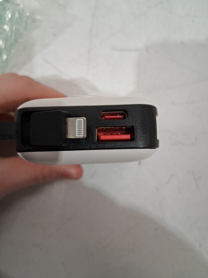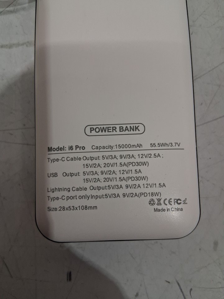 Portable FAST CHARGING Power Bank with type c and lightning bolt cable - 15000mah - white (MODEL: i6pro)