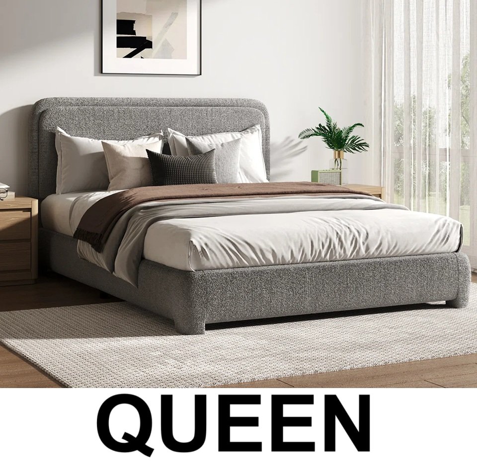ebern designs boucle upholstered platform bed frame - queen size - light gray - (model: zybe008901)