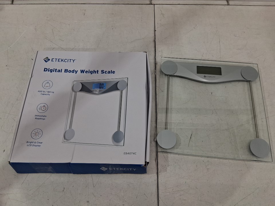 ETEKCITY DIGITAL BATHROOM BODY WEIGHT SCALE - 400LB MAX CAPACITY - SILVER/CLEAR - (MODEL: EB4074C)