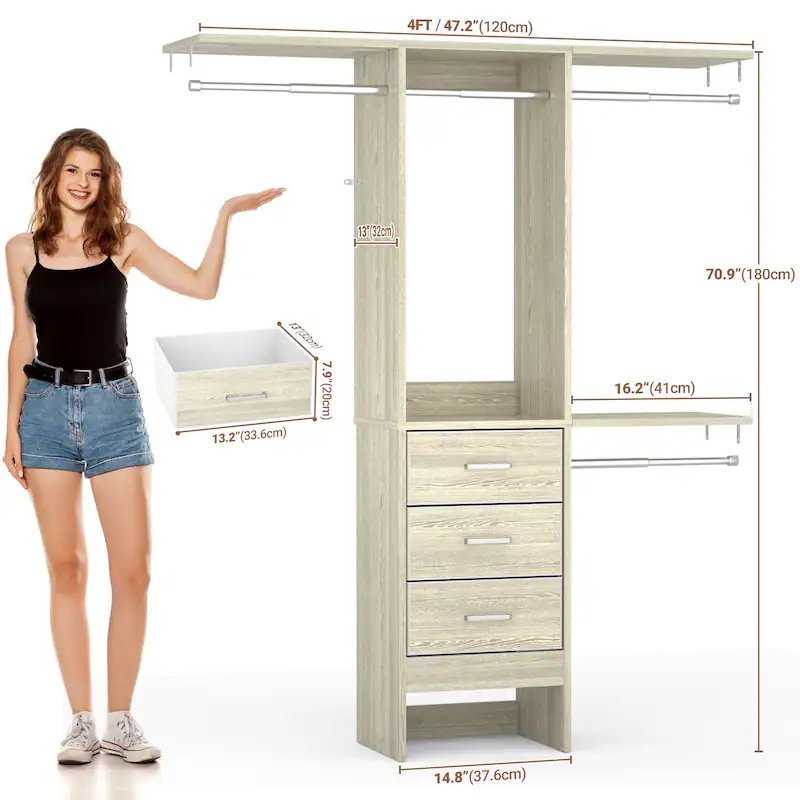 cyclysio modular Closet Shelf System with Drawers - 4FT x 71" - washed oak (model: DKY-81)