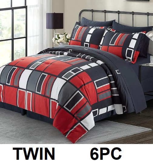 6pc ARTALL Bed in A Bag - twin - Black Gray Red Plaid