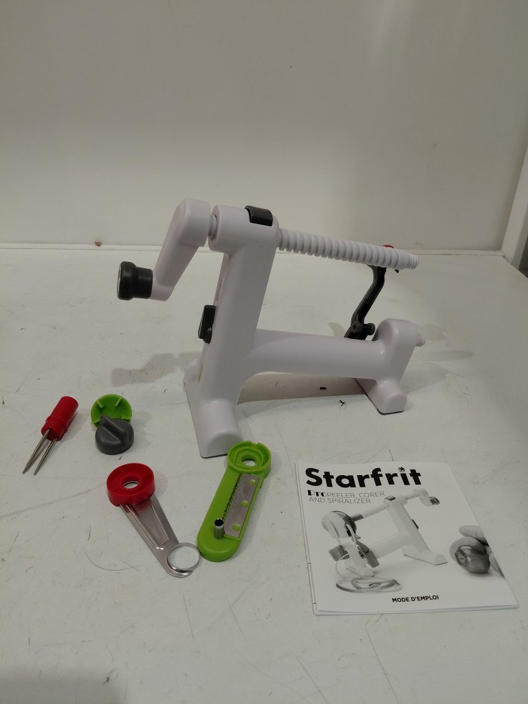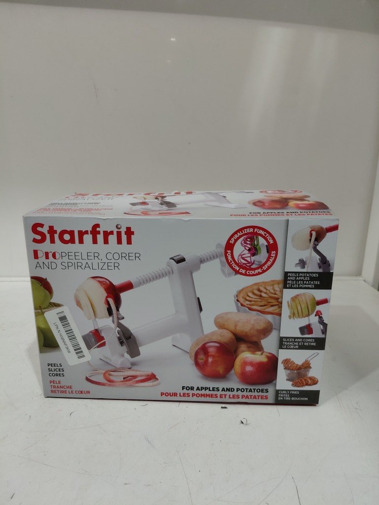 starfrit pro peeler, corer & spiralizer for potatoes and apples - white/red (model: 0921070030000)