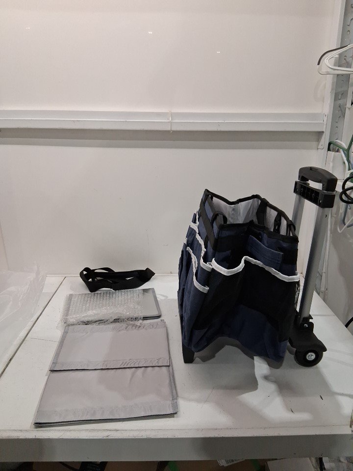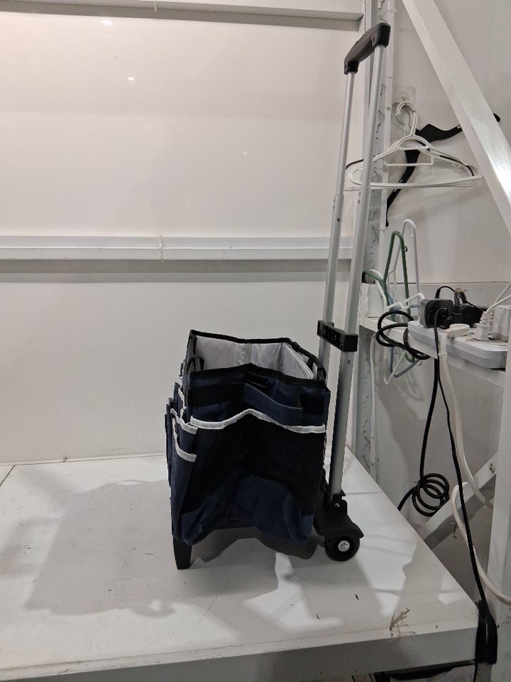 ZIOZERTT Large capacity Rolling Cleaning Caddy removable dividers and wheeled trolly - 11" x 15" - trolly: 18" - 39" - blue
