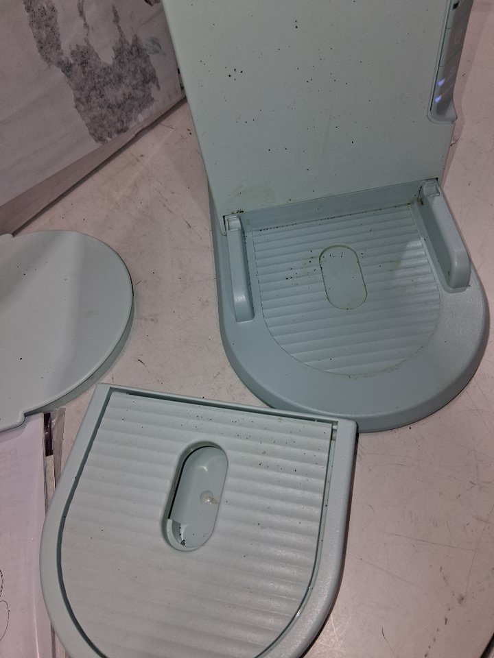 some coffee grinds and stains from use, item was tested for power, see photos.