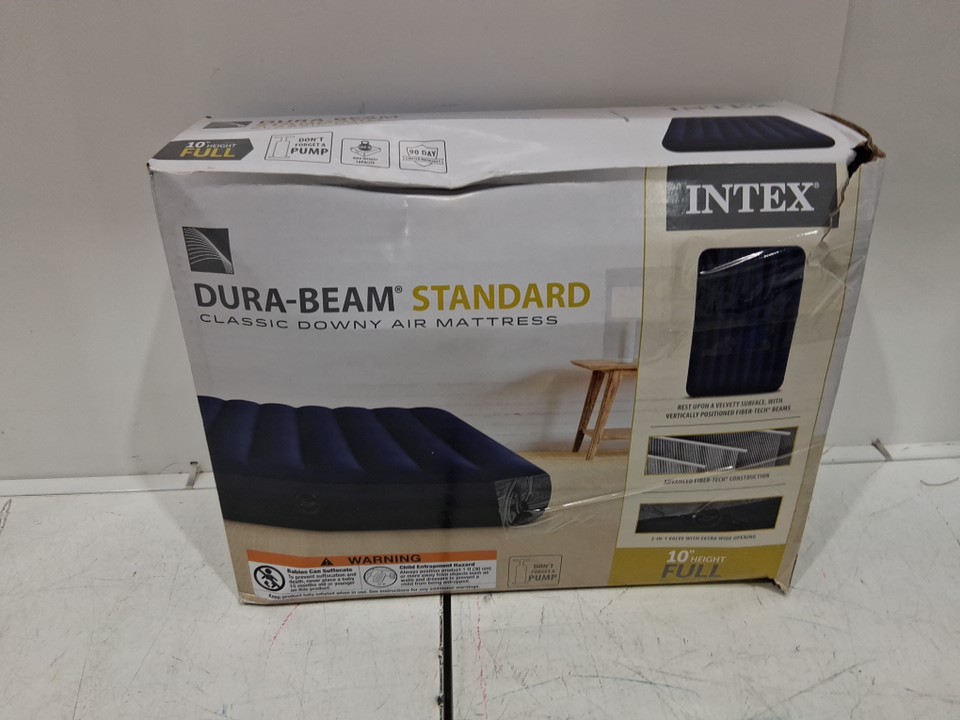 INTEX DURABEAM STANDARD DOWNY AIR MATTRESS WITH 300LB WEIGHT CAPACITY - 10" full - blue/GREY (MODEL: 64758E)