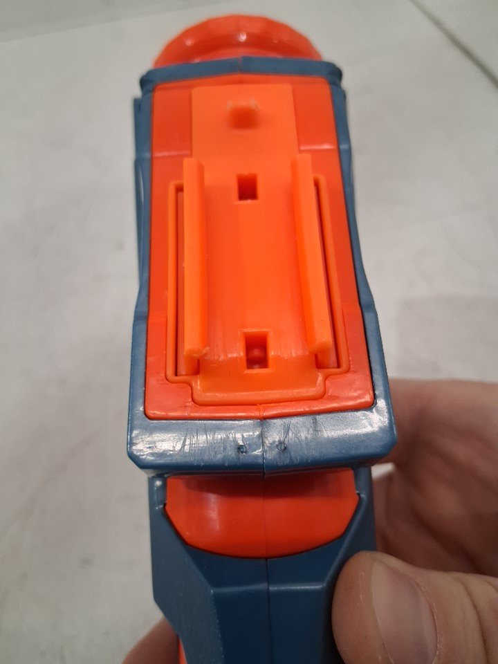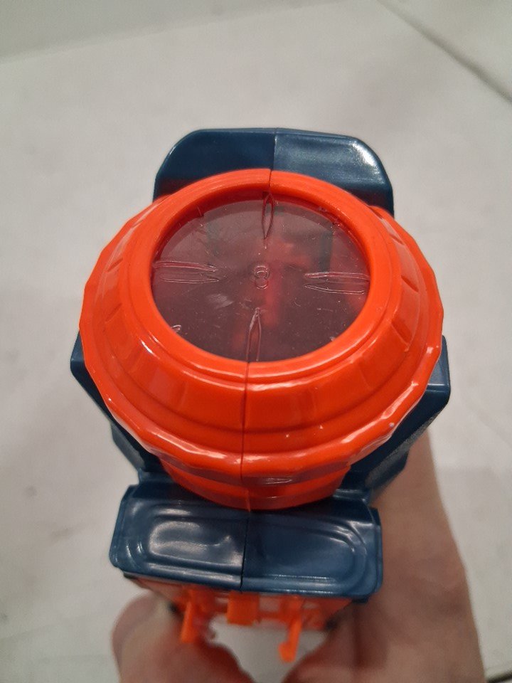 There are some faint scratches on the gun and it is missing most of the bullets indicating previous use (see photos)
