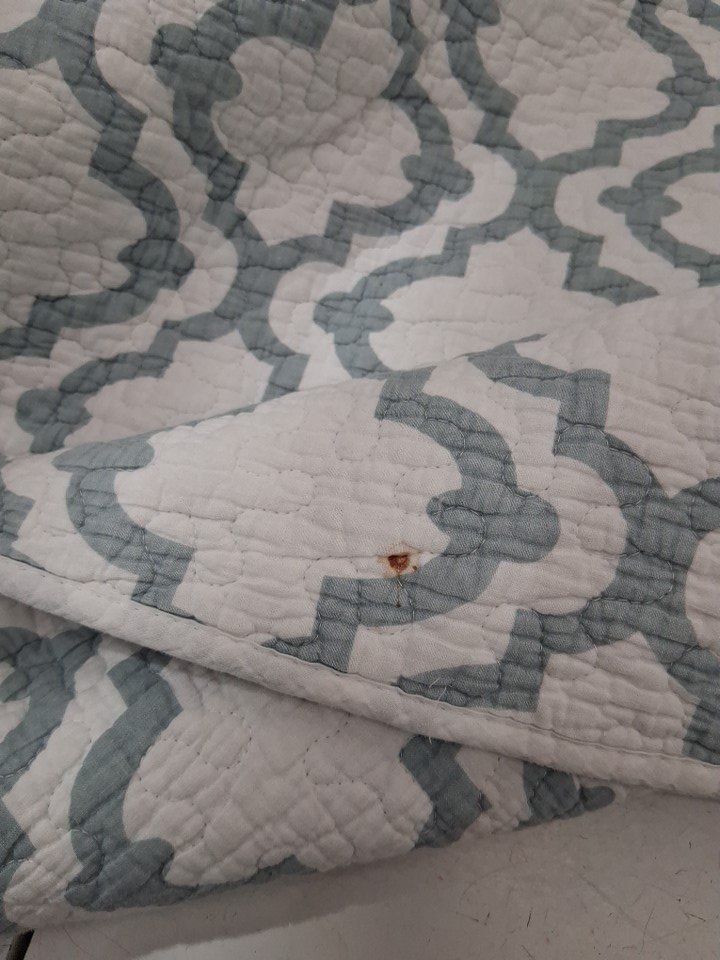 please note there are some marks and stains on the blanket and pillowcases from previous use, they should be washed before use