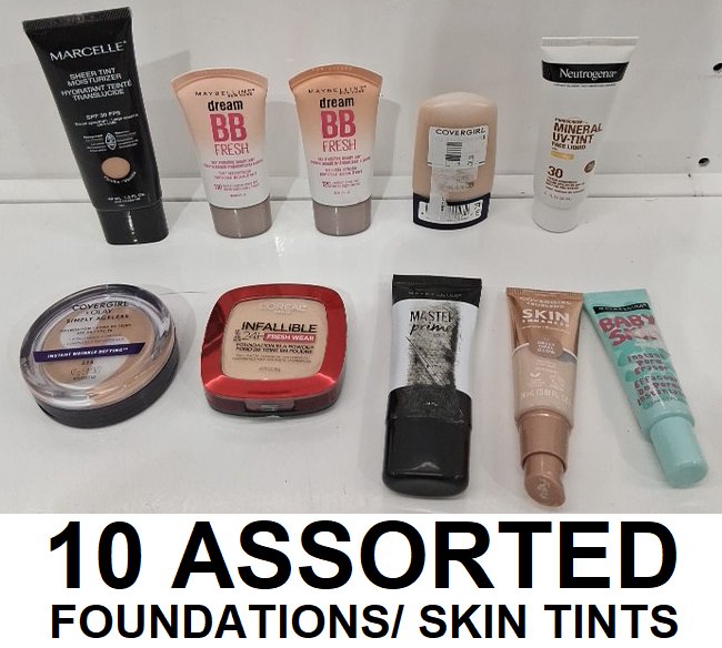 10 ASSORTED FOUNDATIONS/ SKIN TINTS - VARIOUS BRANDS/ SHADES