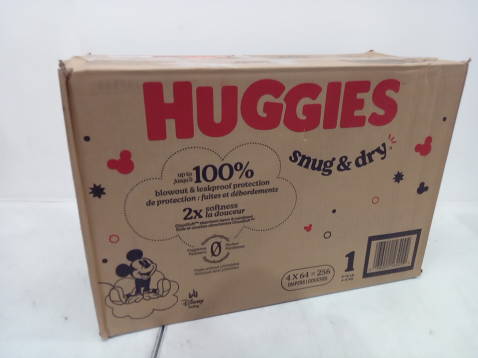 256PK HUGGIES SNUG AND DRY DIAPERS WITH TRIPLE LAYER PROTECTION - SIZE 1