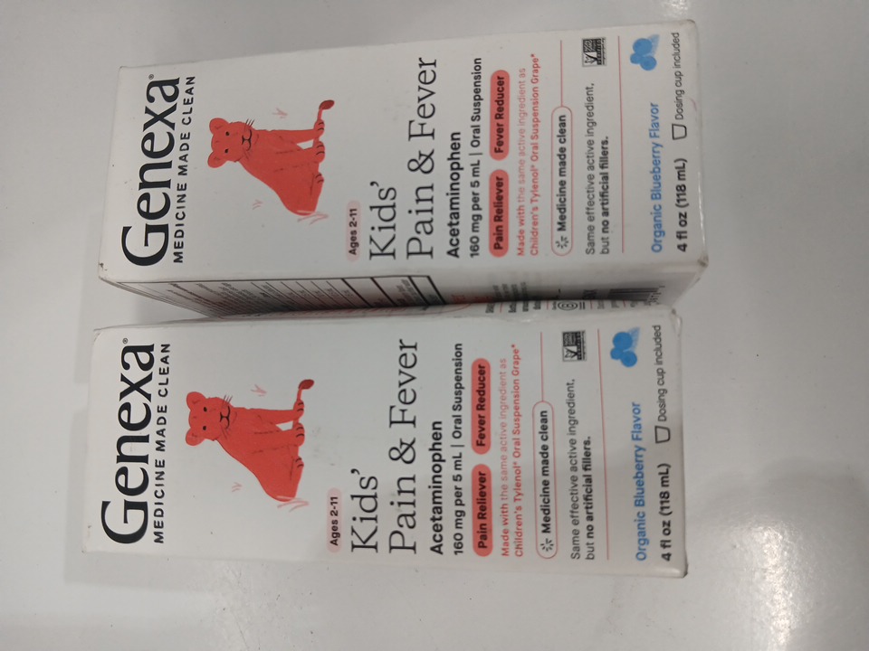 2 Genexa Kids' Pain & Fever Acetaminophen - 118ml - Gluten-Free Blueberry