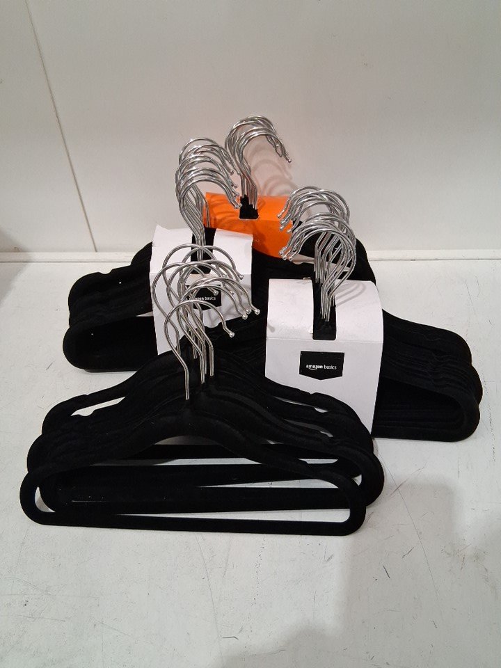 50PK kids AMAZON BASICS VELVET NON-SLIP CLOTHES HANGERS - black