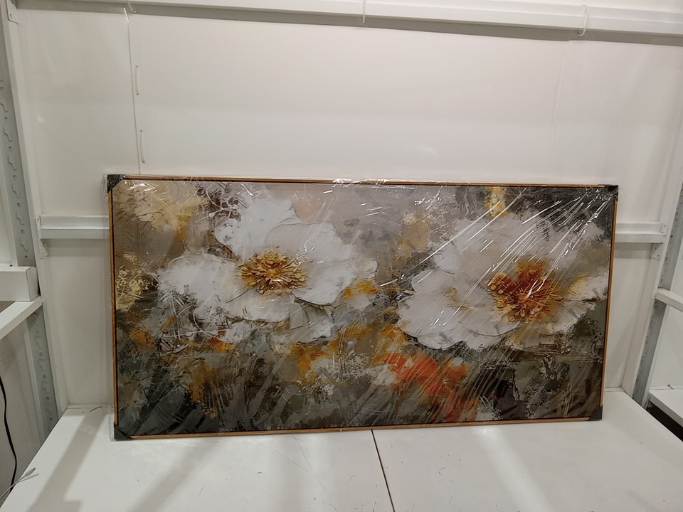 orvannaatr abstract flowers framed canvas print - 28.7" x 57.5" - gold