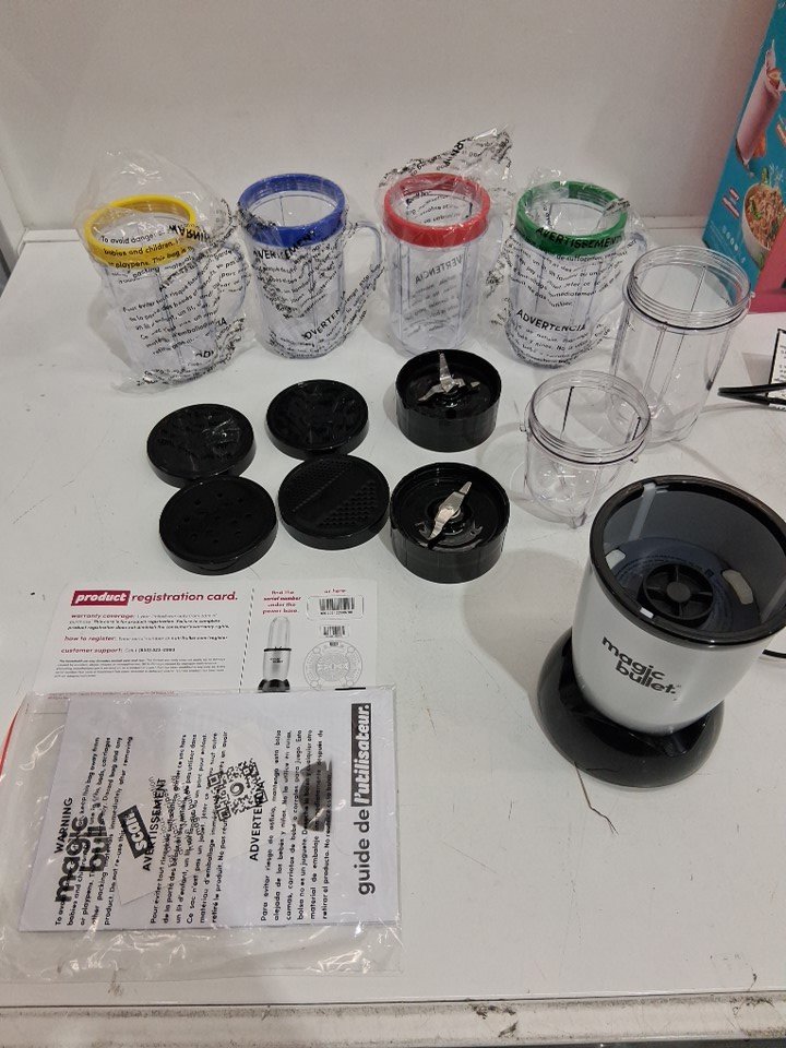 MAGIC BULLET PERSONAL BLENDER SET WITH TRAVEL CUPS - SILVER (MODEL: mbr-1702m)