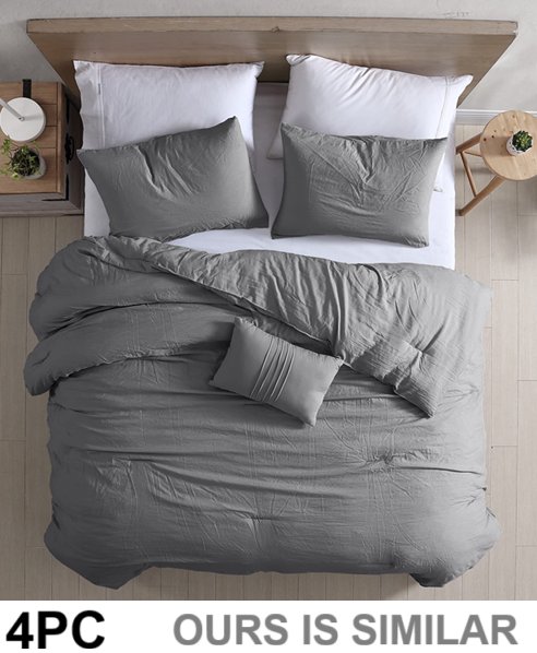 4pc Oeko Tex comforter with three small accent pillows - 54'' x 75'' - Grey