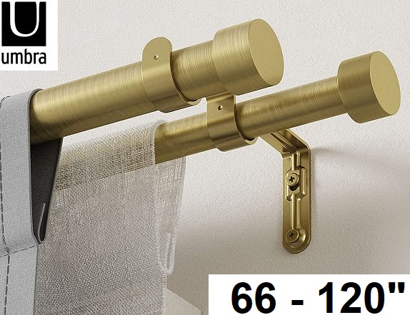 UMBRA CAPPA 1" THICK DOUBLE DRAPERY, 66-120" ROD SET - BRASS (MODEL: ‎1014401-104-a61)